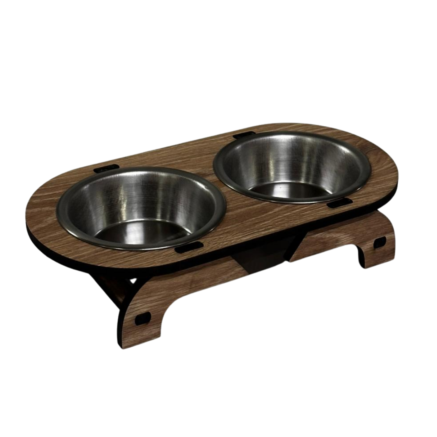 Ahşap Ayaklı Çelik İkili Mama Kabı